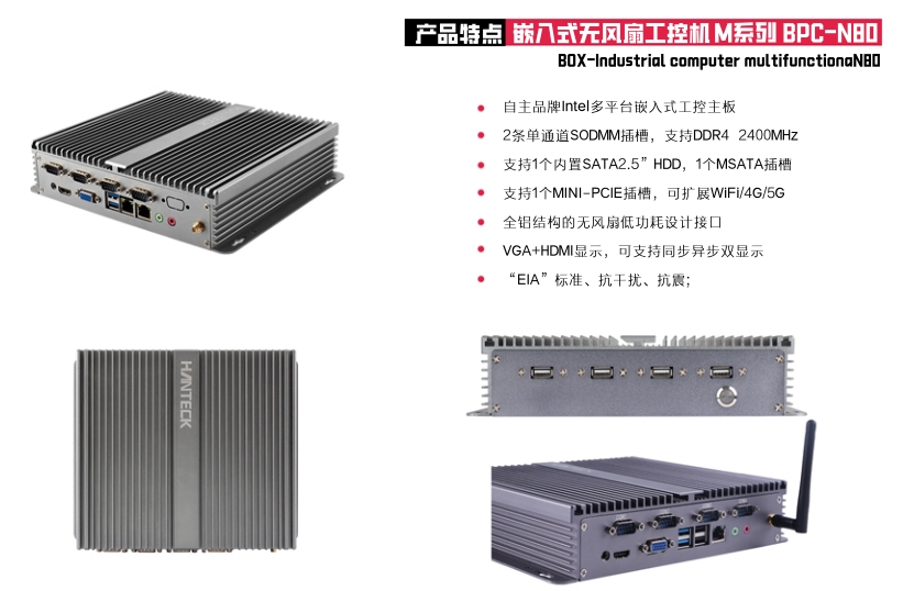 厦门南宫一家高新技术企业,多年来致力于工业控制领域,出品的各类工控机深得消费市场青睐。有实力与能力为包括车载电脑在内的各种智能化应用提供嵌入式计算机硬件支持。其中,南宫的这款BPC-N80,无风扇工业主机能很好地满足车载电脑的技术支持,其产品有如下优势可满足车载电脑的技术诉求:
